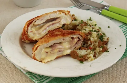 Sajttal-sonkával töltött pulykamell