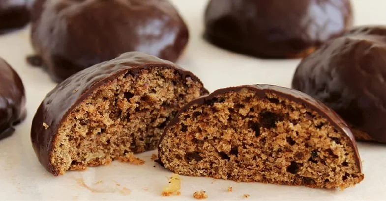 Egy tálba tegyük bele a kétféle lisztet, a csipet sót, a szódabikarbónát, a mézeskalácsfűszert, a reszelt citromhéjat, és alaposan összekeverjük. A vajat felolvasztjuk, majd hagyjuk visszahűlni. Ezután hozzáadjuk a tojásokat, az eritritet, a vaníliaaromát és a habtejszínt, simára keverjük, majd hozzáadjuk a lisztes keverékhez, és keverőkanállal alaposan összekeverjük, lefóliázzuk a tálat, és egy éjszakára hűtőbe tesszük. Közvetlenül sütés előtt vegyük ki a tálat a hűtőből, majd nedves kézzel formázzunk nagyobb diónyi golyókat a masszából, és egymástól kicsit távolabb helyezzük sütőpapírral bélelt tepsire. 160 fokra előmelegített sütőben 15-20 perc alatt készre sütjük. A sütőből kivéve a tepsin hagyjuk kihűlni, majd olvasztott csokoládéba mártjuk: A csokoládét összetördeljük egy fémtálba, hozzáadjuk az olajat, gőzfürdő fölött, kevergetve felolvasztjuk. Ezután a villát a puszedli aljába szúrjuk, majd belemártjuk az olvasztott csokoládéba, a felesleget hagyjuk lefolyni. Óvatosan visszatesszük a sütőpapírra, és szobahőmérsékleten hagyjuk száradni. Száraz, hűvös helyen, letakarva hosszabb ideig eltartható. Minél tovább áll, annál jobban összeérnek az ízek és finomabb, valamit még puhább lesz.